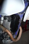 I attached the Oil cooler in question. Does it look a bit too high? I would probably move it behind the header that's sticking out maybe that will help... Also I have to mention that the sound goes away while idling or when the bike is already turning at higher rpm's so I don't know what's up.