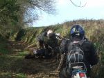 Most of it was OK but I don't like ruts and we did a lane nicknamed the "lane of pain" which is one long slippery rut. Here is one of Martyn's pics showing a rider who came to a stop at the bottom corner