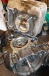 At home bit of a hole in rear of left crankcase under starter motor. Engine out, no problem getting flywheel off, bolt loose, woodruff key sheared off. Head off, barrel off, Hmmmm piston comes with it! Conrod a bit bent.
