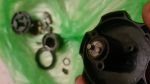 7: Check the locking tang is fully out and refit the metal spacer, o-ring and washer. When replacing the locking mechanism, make sure the lugs on the end of the barrel line up with their notches before you tighten up the screws, and try not to cross thread the screws as the plastic is quite soft.