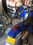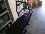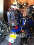 Really been needing a luggage rack for the back of my bike but there was no way I could afford a couple hundred dollars for a new one. Got this rack on eBay for $30 including postage from Tasmania to the Hunter Valley. Its from a Kawasaki GPZ750 and needed a little creativity to fit. A bit of flat bar steel and a bracket off some old broken bark busters and away she went. The left hand bracket kicks out to the left a bit but the rack sits reasonably straight. Save my back and shoulders from carrying my backpack full of work gear every day so I am happy. Also a set of 30mm risers on my bars to stop that feeling of leaning over the bars. Getting better all the time. Gonna have to work on some cosmetics soon.