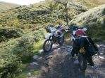 Back from the Isle of Man, what a great place for green laning or rather rock laning, we managed to do all of them but two which were temprerary closed, I would recomend any one to go and ride them but you need at least 3 days riding from 8am to 7pm at a sensible pace so not to upset the natives who I must admit are so biker friendly, its unbelevable, infact hikers horse riders & mountain bikers bid you good day as you pass and even advise you on the condition of the trail ahead, unheard of over here, disaster struck about 2 miles from the end of the last lane down near Port Erin, I dropped of the centre ridge into a rout and dumped the bike, slow speed no dammage to me or the bike until I pisked it up, then bang my achilles tendon snapped in my rightl leg, I new streight away what I'd done as I snapped my left one 10 years previous, thank goodnes it happened on the last lane and not the first, I managed to ride the bike to the end of the trail sat down and not being able to use my back brake, trails done we had an Ice cream and a large coffee in Castle Town then did a lap of the TT circuit onto the ferry and home.