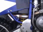 ok pic's of FMF Wr pipe on the bike no welding just turned a bit of thick wall tube to fit over front pipe and inside the can pipe. and made a s steel ring to fit over the rear pipe to give a new front mount for the can. total time taken about two hours