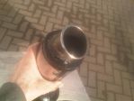 Second came of my white OE and has had baffles removed so is louder than standard ,has a big stainless end welded on and has a patch welded on to inner side to cover a hole ,clamp is also missing and has a bigger tube over the end and it sealed with exhaust paste ,would be great for a field bike £40 delivered in UK