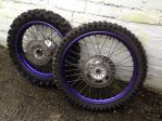 Here they are, two purple TTR wheels with decent tyres and brake discs already on. I bought them (second hand) as spares with half an idea to supermoto my '94 Raid but have never used them.