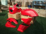 This is how far I have got, still need to paint the fibreglass side panels and the tank, the top of the motor (now VERY CLEAN and bottom end painted), buy a new front rim (the rear cleaned up alright) along with a few other bits and pieces.