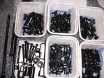 After spending countless hours of using a drill with a wire brush attachment, folded up sandpaper, small brushes, a mixture of turps and diesel, washing powder, the engine is now ready for a proper degreasing and paint. The weather has been SHOCKING lately so not much has been done other than a few of the smaller parts. I will be buying brand new nitrogen filled twin shocks for it, should make it a bit better in the trails.