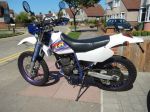 250 Yamaha 1998 model Open Enduro version in white ("R" reg). Bought last year as a non runner and now all fixed up with new bits. Runs great and is a lovely light trail bike but I have to have a clear out (to many bikes!) so its time to go. New parts fitted including: Starter Sprag clutch Battery Digital speedo head Front sprocket Front sprocket metal guard - from Totally TTRs Upper chain roller and a few other little goodies like extended stainless seat screws that make removing saddle easier. It comes with stainless front exhaust pipe and Supertrapp muffler that sounds nice and fruity. MOT and tax til January 2015. I have put a few miles on this since fixing it up and it runs lovely nice and light off road but new speedo shows zero. The last MOT shows 14249 km at December 2012. Tyres good plenty of life likewise chain. Condition good not perfect but very sound with a few minor scratches etc. £1000