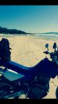 just me and the ttr on the beach.  Bummer was that its high tide. Went through the boggy sand alone  in 3rd gear with power on standby. Last time i was here i had a brand new TT500. Which had more than enough power in the sand. Im still happy with what a standard ttr250 can do. Had 13 --44 gearing. next time will run 13---52  so gear changing in boggy sound will have abit more pull.