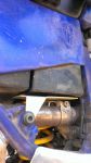 Now bore through both sides using a drill press. enlarge the hole on the outer side enough to allow you to pass the head of the socket screw through on the end of a allen key. you could put a stainless washer under the socket head also. when you do it up tight you will see that you cannot use the same fastening method on the rear mounting point [there will be a huge gap] I cut 2 tiny slots in the back face of the job using a dremel grinder with a metal cutoff wheel about the diameter of the exhaust apart vertically.