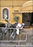 Agrigento Hotel Manager insists we park right outside the front of the hotel, so that the night manager can keep an eye on the motorcycles.