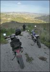 Later that December day, my Son, again, dutifully posing with the TTR and northern Sicilian snow at about bit cold and high'ish altitude somewhere near 37°50'9.24"N 14° 9'26.08"E.