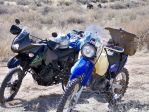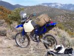 A new friend rode up from Santa Fe on a 2014 Kawasaki KLR650 to pick up his new Green Chile Adventure Gear Pecos Bundle . I demonstrated it's use, set up his Uprising Soft Rack, packed a NRS 38 with his backpack, spare NRS drybag and strapped it on with a Snake Kit and we went for a nice ride. I am caring a Watershed Chatooga with GCAG Mondo ULs and Uprising Soft Rack. Mods to my 2004 TTR250 include an Acerbis 5.8 Gallon/23 Liter Tank, Baja Designs 8" Sol Tek La Paz headlight, custom windscreen(Removable), Aluminum Bars, Moose Racing Handguards, Doubletakemirror, and Oury handgrips.