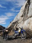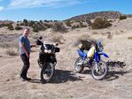 A new friend rode up from Santa Fe on a 2014 Kawasaki KLR650 to pick up his new Green Chile Adventure Gear Pecos Bundle . I demonstrated it's use, set up his Uprising Soft Rack, packed a NRS 38 with his backpack, spare NRS drybag and strapped it on with a Snake Kit and we went for a nice ride. I am caring a Watershed Chatooga with GCAG Mondo ULs and Uprising Soft Rack. Mods to my 2004 TTR250 include an Acerbis 5.8 Gallon/23 Liter Tank, Baja Designs 8" Sol Tek La Paz headlight, custom windscreen(Removable), Aluminum Bars, Moose Racing Handguards, Doubletakemirror, and Oury handgrips.