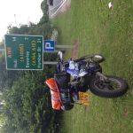 This ended up being the day to end all days. I was on the road by 6:30 and headed down the A1 to Berwick upon Tweed stopping along the way for photos at the boarder and enjoying the scenery. I then carried on to Holy Island/Lindisfarne and decided to go across and have a look around. I arrived at the causeway about 30 mins before the safe crossing time started, but using my judgement and thinking I could always do a U-turn if need be I headed over. It was fine with about a foot of water at the worse case. I parked up on a deserted island (it was only 8am) and spent an hour or so walking around before heading back and taking some on board action shots with my phone as I came back over the causeway. I then did the most boring bit of the trip which was the A1 and A19 down to Middlesborough via the Tyne Tunnel. It just seemed to drag especially knowing the North Yorkshire moors awaited me. Once reaching Middlesborough I took the fantastic A171 to Whitby and that is where I became distracted by the moors. I turned off and ventured up onto the moor and came across a lovely "Not suitable for motor vehicles" sign and decided to go for it. This was a brilliant moorland dirt track which ran for about 3 miles over the moor which best I can work out was near the Moorsholm/Houlsyke area. Loaded up with tyres at road pressure it was interesting to say the least, but I took it easy and loved it. Half way down I stopped and spoke to a man with his dog and he told me to turn around at the end and come back and then head up to t'beacon over yonder, as there was another track up there I should go on. He also told me to cross the Humber Bridge on my way down the country as its quite spectacular. I followed his directions and found the track, again with spectacular views, and followed it for another 3 miles or so down into a little village. In the village I crashed. A rabbit jumped out of a hedge right in front of me on a tight right hander. I hit the brakes, the front wheel went and I slid before hitting the hedge and being flicked off the bike. I ended up sat on top of the hedge laughing with the bike lent neatly against the hedge below me. The farmer in his tractor that came the other way gave me a strange look as he passed by, before he stopped and asked if all was ok. It was, not a scratch on me or the bike.