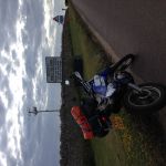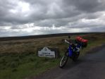This ended up being the day to end all days. I was on the road by 6:30 and headed down the A1 to Berwick upon Tweed stopping along the way for photos at the boarder and enjoying the scenery. I then carried on to Holy Island/Lindisfarne and decided to go across and have a look around. I arrived at the causeway about 30 mins before the safe crossing time started, but using my judgement and thinking I could always do a U-turn if need be I headed over. It was fine with about a foot of water at the worse case. I parked up on a deserted island (it was only 8am) and spent an hour or so walking around before heading back and taking some on board action shots with my phone as I came back over the causeway. I then did the most boring bit of the trip which was the A1 and A19 down to Middlesborough via the Tyne Tunnel. It just seemed to drag especially knowing the North Yorkshire moors awaited me. Once reaching Middlesborough I took the fantastic A171 to Whitby and that is where I became distracted by the moors. I turned off and ventured up onto the moor and came across a lovely "Not suitable for motor vehicles" sign and decided to go for it. This was a brilliant moorland dirt track which ran for about 3 miles over the moor which best I can work out was near the Moorsholm/Houlsyke area. Loaded up with tyres at road pressure it was interesting to say the least, but I took it easy and loved it. Half way down I stopped and spoke to a man with his dog and he told me to turn around at the end and come back and then head up to t'beacon over yonder, as there was another track up there I should go on. He also told me to cross the Humber Bridge on my way down the country as its quite spectacular. I followed his directions and found the track, again with spectacular views, and followed it for another 3 miles or so down into a little village. In the village I crashed. A rabbit jumped out of a hedge right in front of me on a tight right hander. I hit the brakes, the front wheel went and I slid before hitting the hedge and being flicked off the bike. I ended up sat on top of the hedge laughing with the bike lent neatly against the hedge below me. The farmer in his tractor that came the other way gave me a strange look as he passed by, before he stopped and asked if all was ok. It was, not a scratch on me or the bike.