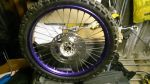 ttr250 purple front wheel, good spokes slight marks on the anodising from age and use off road, tyre is good Bridgestone trial wing and front disk has slight lip