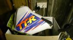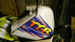 open enduro tank slight marks and scratches, small dent on left barely noticeable, has marks from where seat has rubbed and gaffa tape is covering a patch job where it rusted through but now sealed and doesn't leak, no rust on the inside