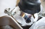Stripped it down (shame, lovely chromework), drilled the spotwelds holding the brackets on the OE lamp, removed them and bonded them to the new unit with seam sealer (car body shop stuff used to bond panels on cars). Bonded the lens into the reflector as it relies on spring clips in it's chrome home.