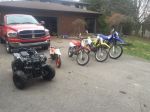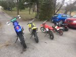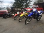 2012 Chinese ATV for my daughter.  1996 PW50 for my youngest son, 2000 XR80R for my older boy, 2009 DRZ125 for anyone who comes over to ride, and finally my 2006 TTR250 for me..