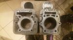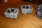 Yeehaw, we're finally getting somewhere. Got 2 shiny 350 barrels back from the machinist today. 2 prototypes on the way to production. I have ordered a pair of pistons from Wossner (the only people who would do small quantities for reasonable money). Unfortunately, another 6-8 weeks of nailbiting anticipation, but I've got to put my crankcases back together first anyhow.