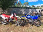 Later this year when they have both been run in and properly tuned there I will organise a dyno shoot out. Both have similar modifications. ie -Modified airboxes, upgraded carbs and headers, mufflers and head porting. Standard cams. The TT350 is 1.5mm oversize so a 87.5mm Wiseco at 358cc.The previous motor 354cc in similar spec to this one was 29 HP. Gadgets TTR350 (which looks just like my TT350 - confusing I know) beat it by half a HP on the same dyno. Hoping the bigger carb will see 30 HP on the TTR350, it's motor was previously 25.5hp as a 2mm oversize 263cc.