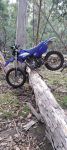 Got out for two days riding bush tracks on the newly built TTR350. Running really well with loads more torque. Its a good hill climber too! Well and truly fast enough through the trees for me. Pic of a log crossing on one track wrecked by storm damage, you get so far in you don't want to turn around. It wasn't all like this!! So many trees down it was hard to find a path through. Otherwise brilliant couple of days riding.