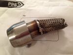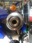 Found an old plumbing fitting ground it down and added a few holes to stop a bit of a whistle it had pressed it in .  takes the edge edge off it will try it on the road when I get a chance  the yard is too wet and I'm not game to suffer the wrath getting it out of the shed .