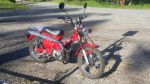 So I have done some mods to the postie. Costing a total of $14. Next will be whitewall tires found them for 150 for a pair, maybe red spoke wraps and that'll be it. Ill keep the trials tyres. Going for a cheesy harley look.