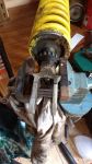 Baaah Easter weekend and families visiting lol. Ok I've had a look at the lowering linkages and they're all in good condition. The lower fork yolk has the threads on the left-hand side and the recess on the yolk faces the rear of the bike,so all looks good in that respect. If I'm reading correctly what I need to do is release the bolt on the bottom yolk and wind the yolk out to give the suspension unit more lift,is that correct? (Left-hand bolt in the photo)