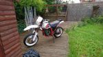 Unfortunately am having to sell my Yamaha TTR supermoto, gone through a full rebuild, am sure Brian can back me up on amount I've ordered for it, I'll start from front, it has YZ250 Forks rebuilt, Yamaha FZR600RR front wheel and disc, custom spindles and spacers, Aprillia SVX450 beringer caliper with a custom cnc machined bracket, braided hose up to a KTM RC8 Mastercylinder, FAT bars with new grips and switch gear, Koso Clocks 99% wired up just needs speedo wiring up, aftermarket head light glass lense which is 60 odd watt, frame has been powder coated as gave wheels, linkages and brackets etc, engine fully rebuilt, new big end bearings, con rod kit, gaskets, wossner piston up to 263cc, can chain, manual cam chain tensioner from the states, valve clearances, oil pump gasket, has the rare optional oil cooler and kick starter kit took years to gather all bits for them, off top of my head I know it's had more but can't remember everything we did we went through engine throughly, rear shock has been rebuilt and fitted with a stiffer shock and also lowered dog bones as Forks are slightly shorter to make it sit right, rear wheel is a Yamaha FZR400RR Brembo wheel powder coated again, custom spindles etc, exhaust is a genuine TTR FMF it's loud but honestly best sounding exhaust for the bike, there's more I've probably listed been built up over several years and brakes my heart to sell it, but after loosing a friend to a bike accident and nearly putting myself in a wheel chair two years ago am not riding anymore and would rather sell them let it sit, I have loads of spares that if a reasonable offer is made when buying the bike I'll sell along with.