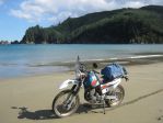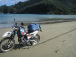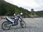 Short ride today to see how it behaves - Onamalutu (gravel roads and mountains), Rarangi (shingle beach and adjacent pine forest trails), Wairau (braided river-bed), and Wairau Diversion Reserve (sand) at the top of the sparsely populated South Island, and back home in time for the MotoGP.