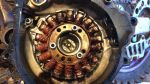 What we found after opening the left case cover - broken bolts holding generator. Generator is damaged by broken bolts.