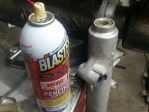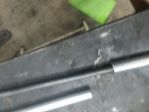 Now my springs are tooooo long. My bike came with 2" of steel tube spacers over the spring. So, spring out, then I cut about 3/4" off my springs with an air cut off abrasive tool. I ran a long threaded rod through my spring, nut and washer on each end and compressed my spring down to a 17" length. With a propane torch I heated the spring coils on the end of the spring previously cut, and as they almost reach a red glow, they relax due to the spring pressure, I did this until I had a full coil laying flat against the washer.