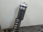 Now my springs are tooooo long. My bike came with 2" of steel tube spacers over the spring. So, spring out, then I cut about 3/4" off my springs with an air cut off abrasive tool. I ran a long threaded rod through my spring, nut and washer on each end and compressed my spring down to a 17" length. With a propane torch I heated the spring coils on the end of the spring previously cut, and as they almost reach a red glow, they relax due to the spring pressure, I did this until I had a full coil laying flat against the washer.