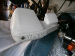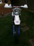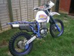 The frame forward of the swinging arm is really good, behind is a bit flakey (paint) and a bit of corrosion. It not that bad having looked at it but its worth sorting it out I think. The hand guards just have "Yamaha" on them, no other marking.