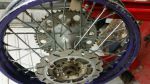 Decided 17 loose spokes was probably a few to many. So a quick visit to TTR towers for a new set and the loan of a wheel thingy, out came the grinder and after an hour new shiny ones fitted.