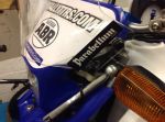 Some screen fixing pics , it's just a case of drilling the headlamp cowl and fixing with small bolts and rubber washers , the screen comes with the fixings from procycle , it's a DRZ screen , I just remembered the bottom fixing is using a small plate with two holes to get screen at the right angle , I used a piece of stainless with the holes about 20mm apart ,