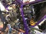 Cheers guys. It’s nice bringing a bike back from the dead. As many of you will know the cost far outweighs the value of the bike but it’s a bike my wife really loves. The frame is powder coated, you can’t tell in the pictures but it’s a metallic purple and looks great in the flesh. As well as the frame and swinging arm coated we did the hubs and rims along with the shock spring before it went off to Gibbs for a rebuild. The top end was rebuilt, forks serviced, new clutch, carb rebuilt, exhaust repaired, fitted renthals, all the cables replaced, new battery, tyres, chain & sprokets, heated grips, replaced nuts and bolts, all bearings replaced, fitted DRL’s, and some other stuff I’ve probably forgotten!