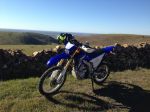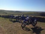 Today the lads on blue bikes Me on a WR250R, Janos on a WR450F & Matt on a DRZ400s, 210kms around the hills, fast twisty hilly gravel roads, summers tracks, twin tracks & farm tracks. The weather was very nice for a winters day with clear skies & sunshine, only took a couple of photos when we stopped to take in the view over the green hills complete with dry stone walls.