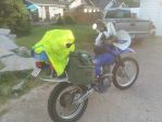 TTR 250 with aftermarket carb ran right along at 75 Miles to the gallon, 14/44 gearing maybe 40 lbs of gear to start and lighter as we ate our way through the dried meals we carried. We passed on campgrounds and pitched our tents when we were tired, we boiled water for coffee and dried meals and ate pizza and hamburger as we passed through towns. A bigger gas tank would be good, we carried gas to make our loops but only had to turn to reserve on the last 5 miles of our loop from Sheridan Mt and into Dillion Mt.