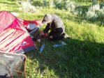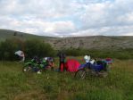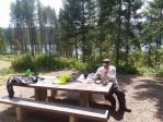 Day two was another 150 mile day with some bike repairs thrown in and grizzly bear activity/ wounded grizzly bear in the camping area for good measure which diverted our ride late in the day out into desert sage brush country. No bears, but coyotes howling all nite long and lots of mosquitos.