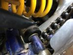 as the swing arm goes up past level (engine sprocket/ swing arm pivot/ rear axle) in line