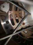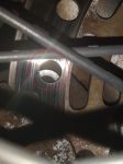 I have the blue model's manual. My front brake pads are worn but still has approx 2 mm maybe 3 mm of 'meat' left...But the disc is rubbing against the circled parts of the caliper bracket. It will take some time before I get replacement pads. According to the blue model manual, the pad wear limit is 1 mm. Is there something am missing here?