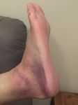 I lost the front in a tight turn & the bike landed heavy on my foot, heavy bruising & swollen to the max, Thursday another rider got his foot caught between the bike & a rock, 2 broken bones in his foot & big toe in two places plus a cracked rib