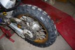 Front tyre will stay Mitas 644 Army Special. The front Mich doesn't have enough side lug for my preference, but this will probably limit my cornering lean so those chicken strips will probably have to be shaved off with a knife