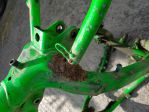 Here I have for sale a OE frame in a hideous shade of green, but don't let that put you off on its own. It's also has the sidestand lug cut off and the brake pedal pivot modified (I think as it's different to my raid frame).