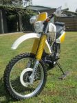 Ported the intake manifolds out from 24mm to 28mm, ported the head, custom built big bore headers into a YZ250F muffler. TTR250 complete front end (resprung and revalved) grafted into the original (bored out 41mm to 43mm) tripleclamps.