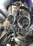 The original twin carb set up (24mm) was being problematic so bit the bullet and bought 2 x new 28mm Keihin PWK carbs. Took a lot of tuning, set the second carby up as a mechanical secondary, blocking of the pilot jet and choke.