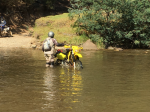 On a XT250 while my mate was having a ride on the TTR, my back is still damaged from this bloody big hole